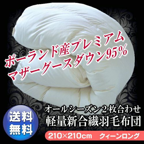 ◆ご満足いただけなければ全額返金保証◆ ポーランド産 マザーグース 新合繊 2枚合わせ 羽毛布団
